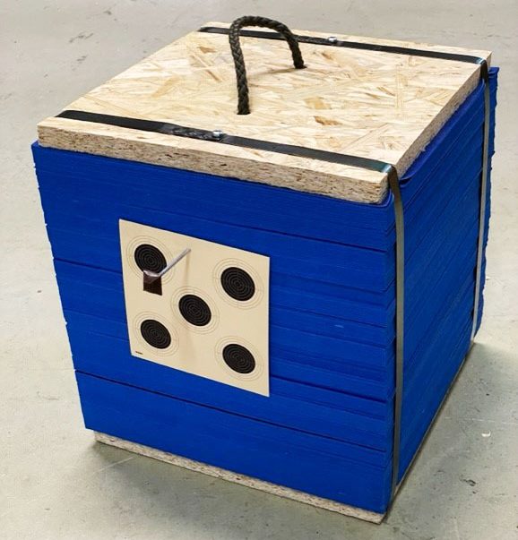 Diese langlebigen Zielscheiben sind aus fest gepressten Kunststoff-Lamellen aufgebaut und bieten selbst bei starken Compound Bögen einen sicheren Halt der Pfeile.